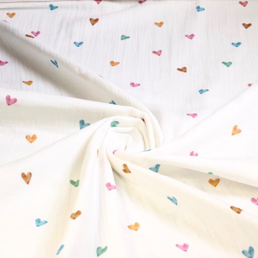 Coton hydrophile pour bébé imprimé de cœurs multicolores