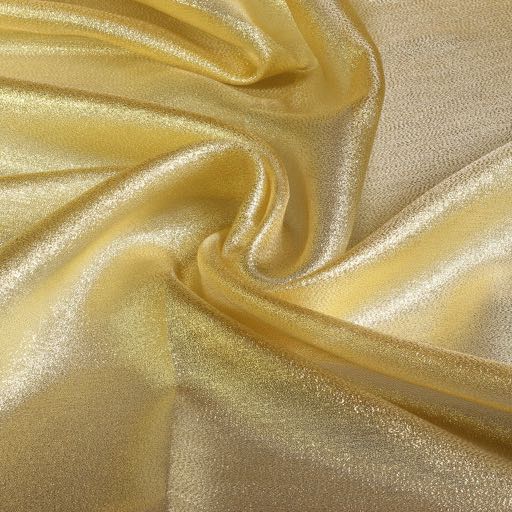 Ce tissu a un dos doux et lisse et un devant "crêpé". Il s'agit d'un tissu léger qui pèse 50 g/m2 . Le tissu a une légère brillance, un aspect "lurex". Bon à utiliser pour la décoration et la confection de rideaux.