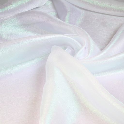 Ce tissu a un dos doux et lisse et un devant "crêpé". Il s'agit d'un tissu léger qui pèse 50 g/m2 . Le tissu a une légère brillance, un aspect "lurex". Bon à utiliser pour la décoration et la confection de rideaux.